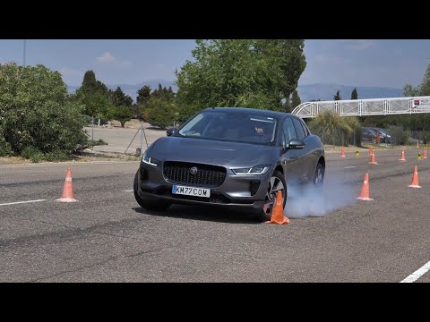 Even at this speed, we wouldn’t call the pass successful because the front wheel is locked altogether by the electronic stability control system. Other attempts saw the other front wheel lock up after turning into the next set of cones, and that’s more than enough proof that Jaguar development drivers weren’t paying attention when the I-Pace was being fine-tuned.